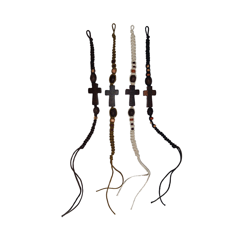 Material: Stoff Armband mit Holz – Perlen und Holz Kreuz