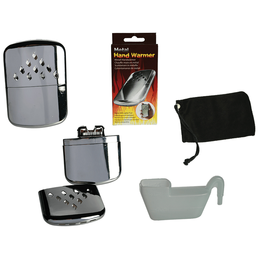 Anwendung: Der Handwärmer wird durch die Verbrennung von Feuerzeug – Benzin erhitzt, das Benzin ist nicht im Lieferumfang enthalten.