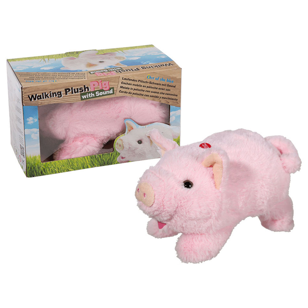 Besonderheiten: Das plüschige Schweinchen kann laufen und grunzt fröhlich vor sich hin.